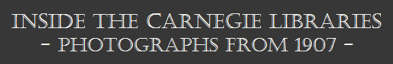 These images came from a photographic study of Glasgow's libraries in 1907. They were issued to commemorate Andrew Carnegie's visit to Glasgow on September 17th 1907. Carnegie came to the city to lay the memorial stone of the Mitchell Library and to address the Annual Conference of the Library Association.