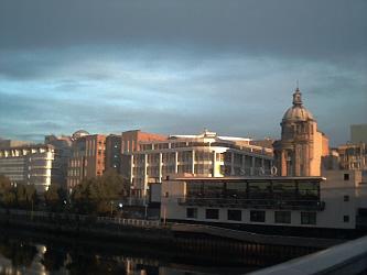 These early morning views of the riverside, taken from the King George V Bridge, show no trace of Glasgow's former status as a great transatlantic port.